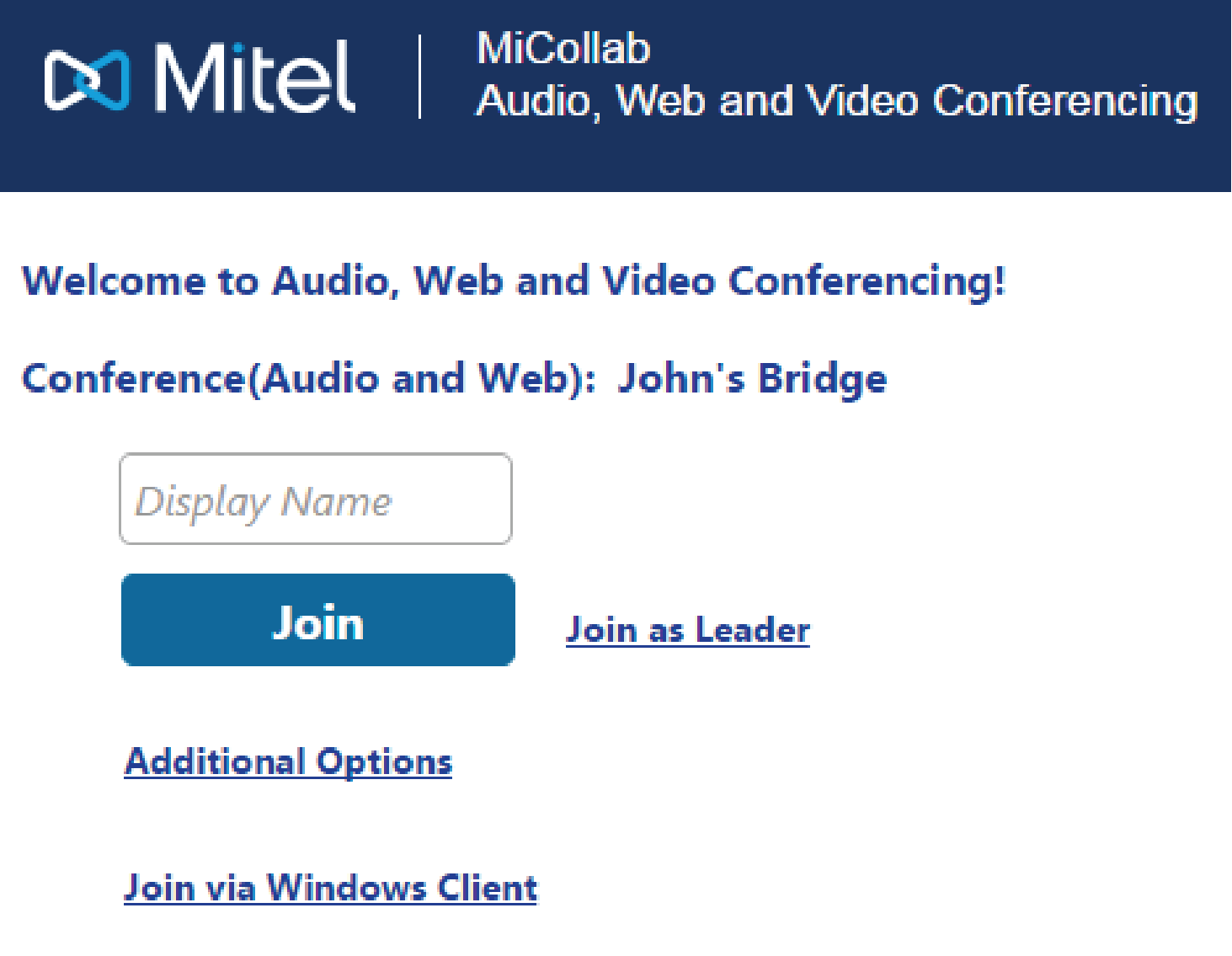 The MiCollab Audio, Web and Video Conferencing Web Client Join page opens.
