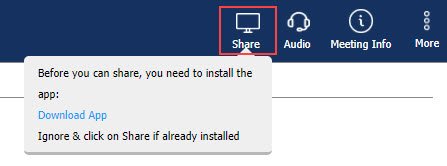 The MiCollab Audio, Web and Video Conference page opens. Click Share in the Web Client.